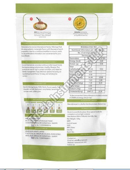 We offer a flavorful Moringa Podi Mix with a spicy kick, perfect for enhancing the taste of your rice dishes. Made with dried Moringa leaves and red chili, this mix has a shelf life of 6-12 months and a net weight of 120g. Store in a cool place to maintain freshness. Packed with vitamins A, this mix provides nutritional benefits. As an exporter, supplier, and trader, we ensure top-quality products for your culinary needs.